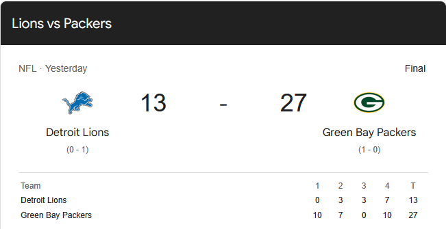 Detroit Lions vs Green Bay PackersSeptember 7, 2025