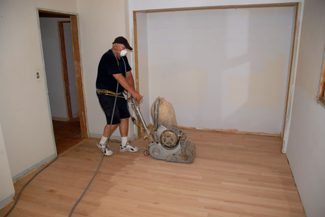 Emil sanding new hardwood floors